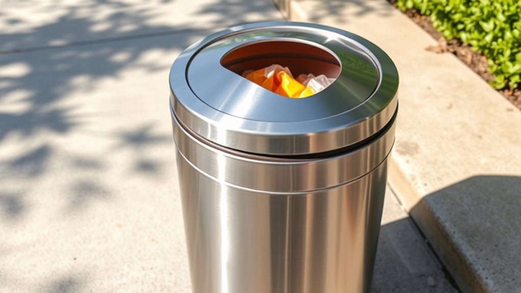 I prevent pests attracted by garbage odors by practicing effective pest control tips and odor prevention strategies. I make sure to seal my trash cans tightly and use eco-friendly deodorizing solutions to reduce smells. Regularly cleaning the cans and placing them away from my home also helps. These simple steps keep pests at bay and ensure my trash area stays pest-free and odorless.