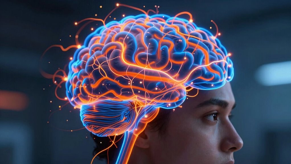 Yes, brain overload can affect your long-term mental health by impairing neuroplasticity adaptation and lowering cognitive resilience. When you’re overwhelmed regularly, your brain struggles to adapt and recover, increasing risks of anxiety, depression, and burnout. Over time, this strain weakens your mental defenses, making it harder to manage stress. To protect your mental health, focus on balancing workload, practicing mindfulness, and supporting your brain’s capacity to adapt and stay resilient.