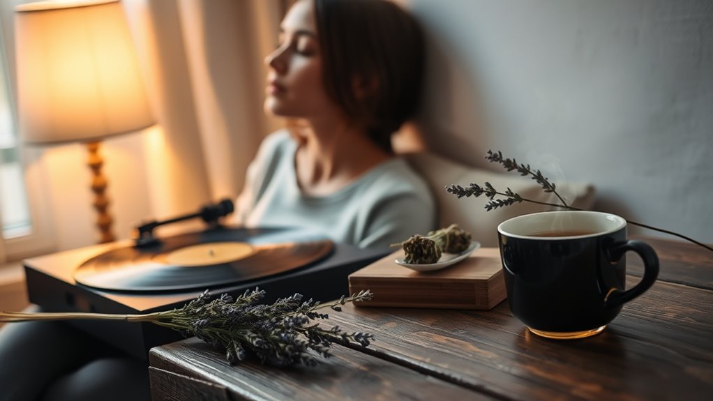 I’ve found that combining music and scent can quickly help me manage stress and boost my emotional well-being. Listening to calming melodies while diffusing relaxing aromas like lavender or chamomile creates a multisensory experience that instantly soothes my mind and body. These simple acts can help me stay grounded during hectic moments and build resilience over time. If you’re curious, there’s much more to discover about how this powerful pairing can transform your stress relief routines.