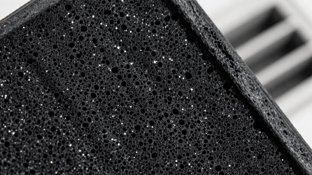 In terms of odor elimination, activated carbon filters are among the best options available. They absorb odors from cooking, pets, smoke, and even chemical fumes, leaving your air fresher and more breathable. Regular maintenance, like replacing the filters as recommended, guarantees ongoing VOC reduction and odor control. Without proper upkeep, the pores of the activated carbon become saturated, and its ability to trap new contaminants diminishes. This diminishes its effectiveness in VOC reduction and odor elimination, so paying attention to filter lifespan is key.