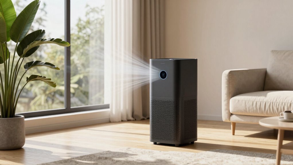 When selecting an air purifier for mold spores, noise level becomes an important factor, especially if you plan to use it in bedrooms or quiet living spaces. Ideally, it should operate below 26 dB in sleep mode to avoid disturbing your rest. Many models achieve this with advanced fan blade design and noise-reducing insulation. Look for devices with sleep or night modes that automatically lower fan speeds and minimize operational sounds, making them perfect for overnight use. Regular maintenance, like filter replacements, also helps keep noise levels down by preventing system strain. Additionally, air purifiers equipped with real-time air quality sensors can adjust fan speeds based on mold levels, ensuring quiet operation without sacrificing purification efficiency.