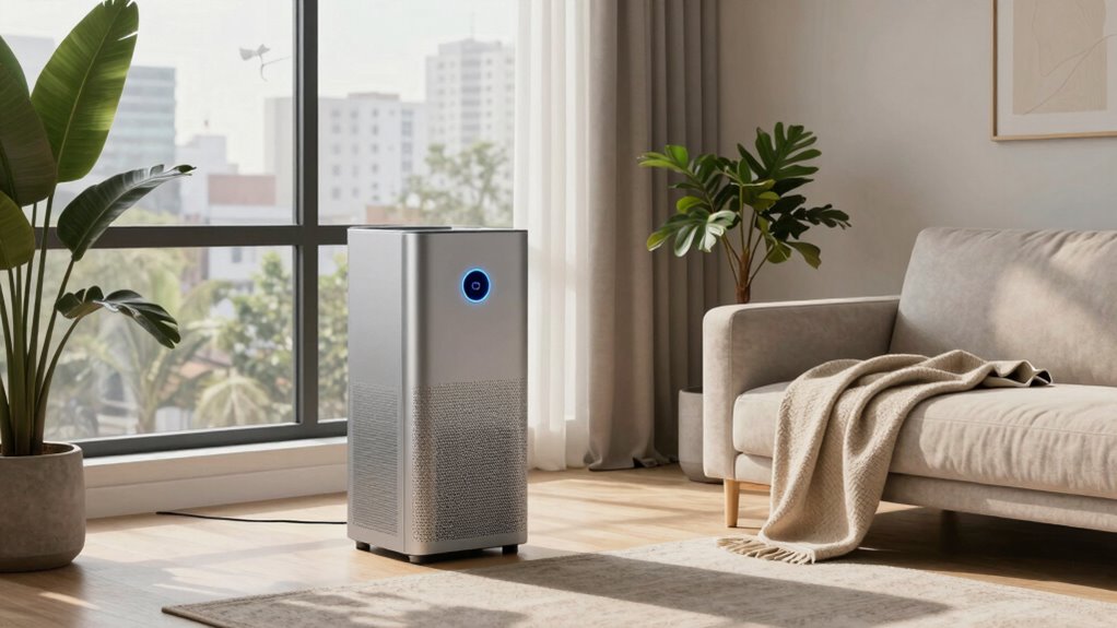 Sure, because nothing says “peaceful sleep” like a tiny jet engine whirring beside your pillow. When choosing a wildfire smoke purifier, look for HEPA filters to trap fine particles, activated carbon for odors, and a good CADR rating for efficiency. Features like quiet operation, air quality sensors, and auto mode help keep your home safe without turning your space into a noisy turbine. Balance power with peace, and breathe easy.