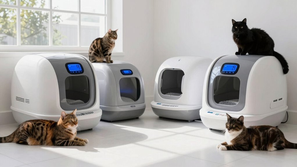 Choosing the right automatic litter box is like finding the perfect dance partner—trust me, it makes the routine smoother and more enjoyable. With these top options for large cats, you’re set to turn a messy chore into a hassle-free waltz. So, pick one that fits your feline’s size and your lifestyle, and watch as your home becomes a cleaner, happier place—where litter box duty no longer feels like a storm to weather.