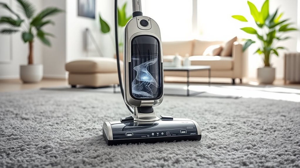 Choosing a carpet cleaner with strong suction is essential because it directly impacts how well it lifts dirt, stains, and pet hair from deep within the fibers. Powerful suction ensures debris doesn’t just sit on the surface but gets removed thoroughly. I look for models with rotating brushes or power brushes like SpinScrub or DirtLifter, which boost agitation and tackle heavily soiled spots more effectively. Deep-cleaning performance also depends on stain removal capabilities, especially for pet accidents or ground-in dirt. Adjustable or multiple cleaning modes, such as Max Clean, let me customize the power based on the mess. Additionally, high-capacity water tanks and efficient solution dispensers help maintain consistent cleaning strength, reducing the need for frequent refills and ensuring a deep, thorough clean every time.