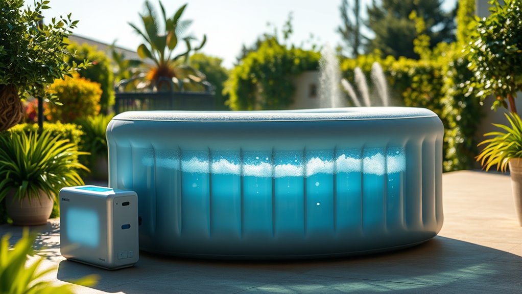 Honestly, inflatable tubs are perfect for outdoor use year-round—if you enjoy a bit of a gamble. I’ve used mine in winter snow and summer heat, and with proper insulation and cover, they hold up surprisingly well. Sure, extreme weather might challenge their durability, but with some care, they can serve you comfortably through all seasons. Just be ready for a little extra maintenance, and you’ll enjoy year-round invigorating dips.