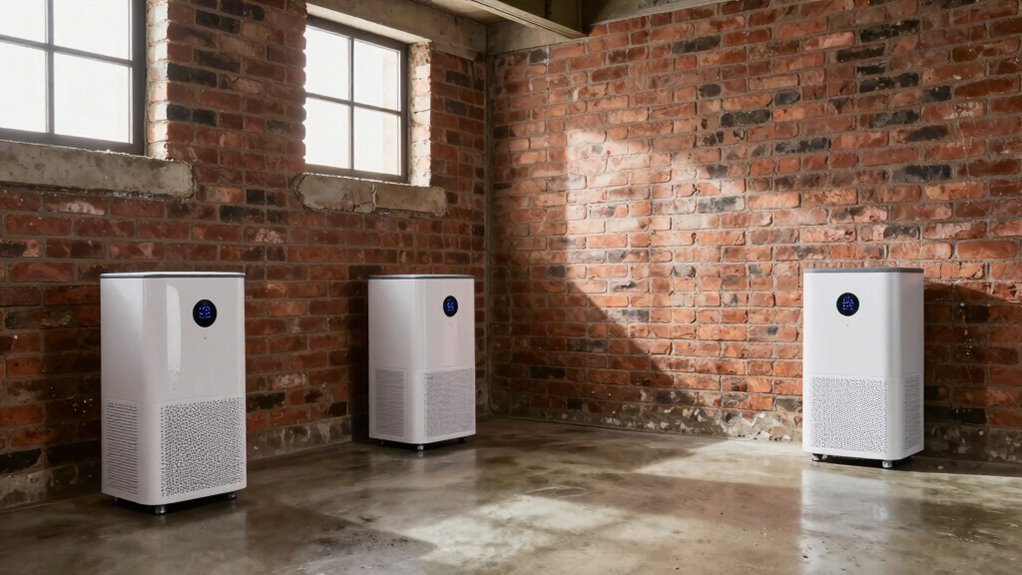 Absolutely, energy-efficient dehumidifiers work just as well for large moldy spaces, although you might think they’re too small to handle such a challenge. I’ve found that modern models pack enough power to dry out extensive areas without skyrocketing your energy bill. It’s pretty satisfying to see them tackle moldy basements effectively while being eco-friendly—proving that size isn’t always everything when it comes to dehumidification.