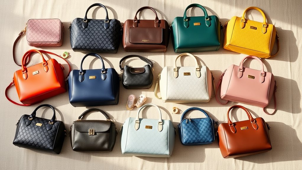 A designer diaper bag’s storage capacity and organization can make all the difference in your daily routine. I’ve found that bags with multiple compartments and pockets allow me to systematically store diapers, wipes, bottles, and clothes for quick access. It’s essential to have insulated bottle pockets and easy-reach wipes cases, plus separate spaces for clean and dirty items to keep everything hygienic and efficient. A larger capacity is a game changer, especially when I’m out with multiple kids or for extended outings. Internal organization tools like dividers and mesh pockets help keep everything neatly separated. I also appreciate external features like quick-access pockets and stroller straps that enhance convenience while I’m on the go.