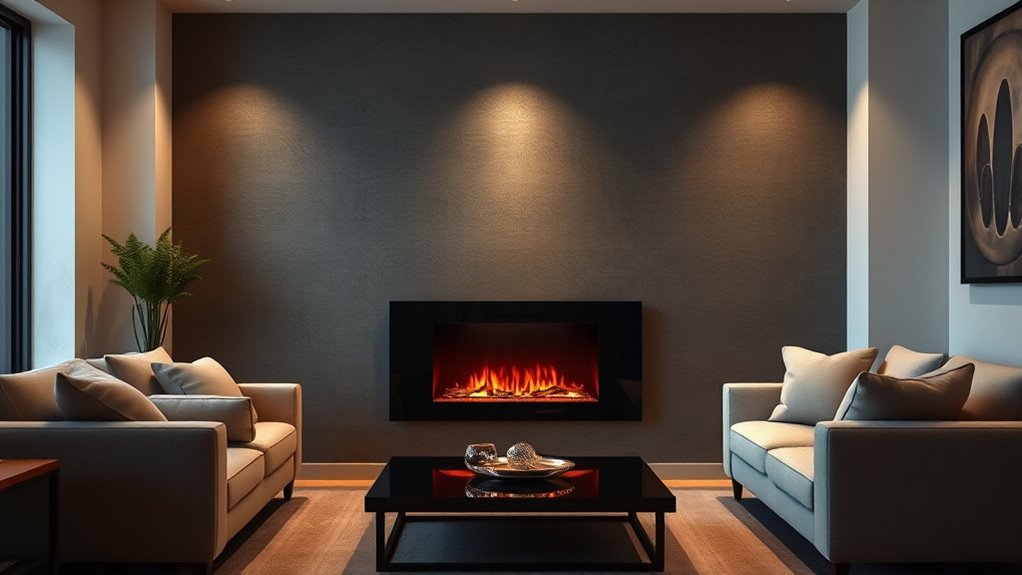 You’ll find that most electric fireplaces operate quietly, making them perfect for apartments where noise levels matter. I’ve noticed that many models produce only a gentle hum or crackle, similar to a small fan or heater. Higher-end units often have adjustable sound settings, so you can customize the noise to your comfort. Overall, I wouldn’t worry about loud noises disrupting your space—most units are designed with quiet operation in mind.