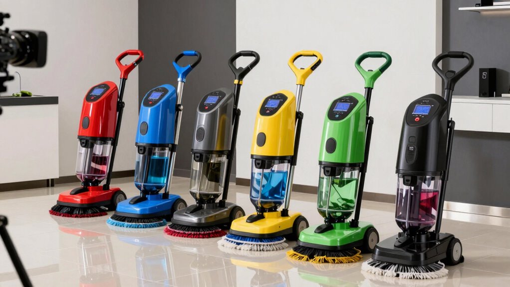 If you’re searching for the 15 best floor scrubber machines for tile in 2026, I’ve got you covered. Based on extensive reviews, top picks include orbital commercial scrubbers, steam mops, cordless spin units, and multi-functional machines designed for durability, efficiency, and ease of use. These machines feature adjustable speeds, water-saving technology, and versatile attachments to tackle tough stains and delicate grout. Keep going, and you’ll discover the best options to get your floors spotless.