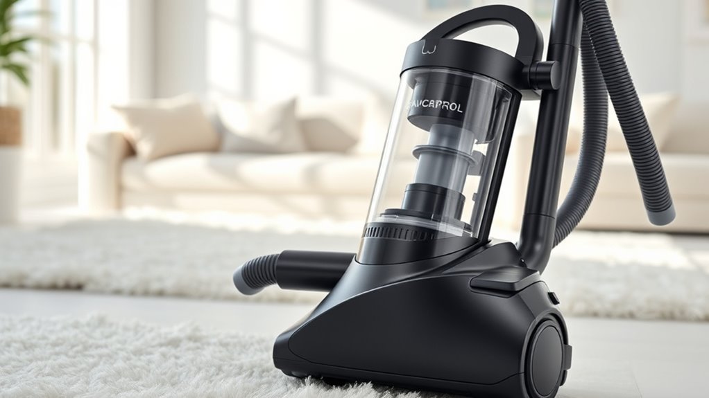 A sealed HEPA system plays a critical role in capturing airborne allergens and dander effectively. It traps at least 99.97% of particles as small as 0.3 microns, including pet dander, pollen, and dust mites. This prevents allergens from escaping back into the air during and after vacuuming, which is essential for allergy sufferers. The sealed design guarantees that dust and allergen particles stay contained within the vacuum, reducing recontamination risks during disposal or maintenance. Regularly replacing HEPA filters and seals is indispensable to maintain peak performance and ensure allergens are effectively captured over time. By choosing a vacuum with a sealed system, I can greatly improve indoor air quality and create a healthier living environment.