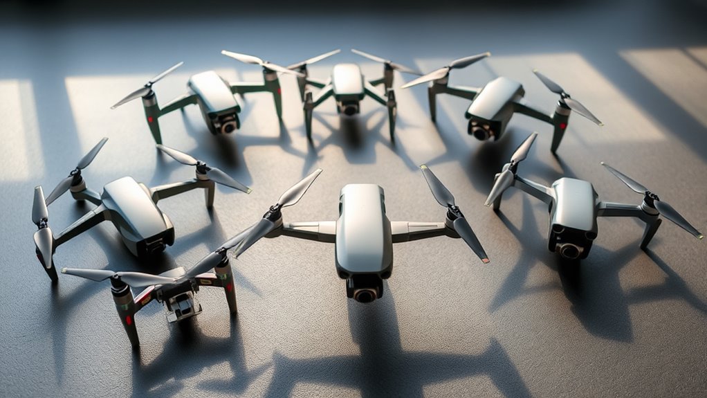 Choosing the right high-end drone can truly elevate your aerial photography game. Did you know that drones with 4K cameras and advanced stabilization features are preferred by 78% of professional photographers? By investing in one of these top-tier options, you’ll capture stunning, professional-quality footage effortlessly. Remember, the right drone depends on your needs—whether it’s for casual shoots or serious filmmaking, there’s a perfect fit for everyone.