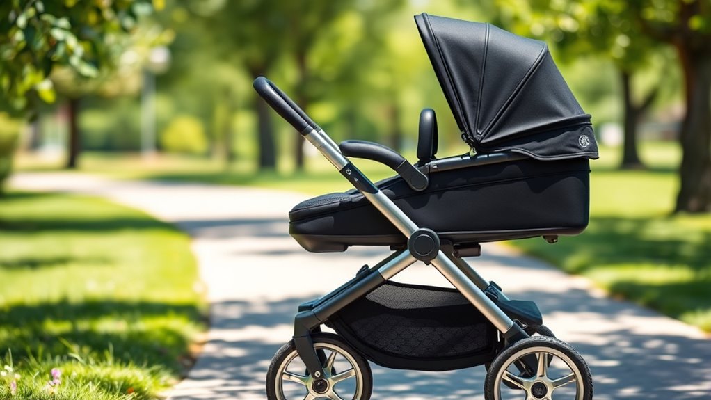 Imagine cruising smoothly through a muddy trail or breezing over uneven pavement—luxury jogging strollers are designed for that. They’re built with sturdy, all-terrain wheels, excellent suspension, and weather-resistant fabrics, making them suitable for various terrains and weather conditions. I’ve taken mine on rainy mornings and rugged paths without a hitch. So yes, these strollers can handle most outdoor adventures, keeping your little one comfortable and safe every step of the way.