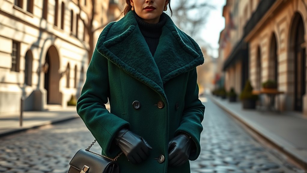A high-end wool coat’s style and versatility hinge on timeless design elements and thoughtful details. I look for classic features like notch lapels, double-breasted fronts, or traditional peacoats, which work well for both casual outings and formal events. Neutral colors such as black, camel, navy, or grey help maximize pairing options with different outfits and accessories. The coat’s length and fit should allow for comfortable layering, ensuring I can shift seamlessly from fall to winter while maintaining an elegant silhouette. Practical details like functional pockets, adjustable elements, and a tailored cut add to its versatility, letting me dress it up or down effortlessly. A well-designed wool coat truly becomes a versatile wardrobe staple, suitable for many occasions.