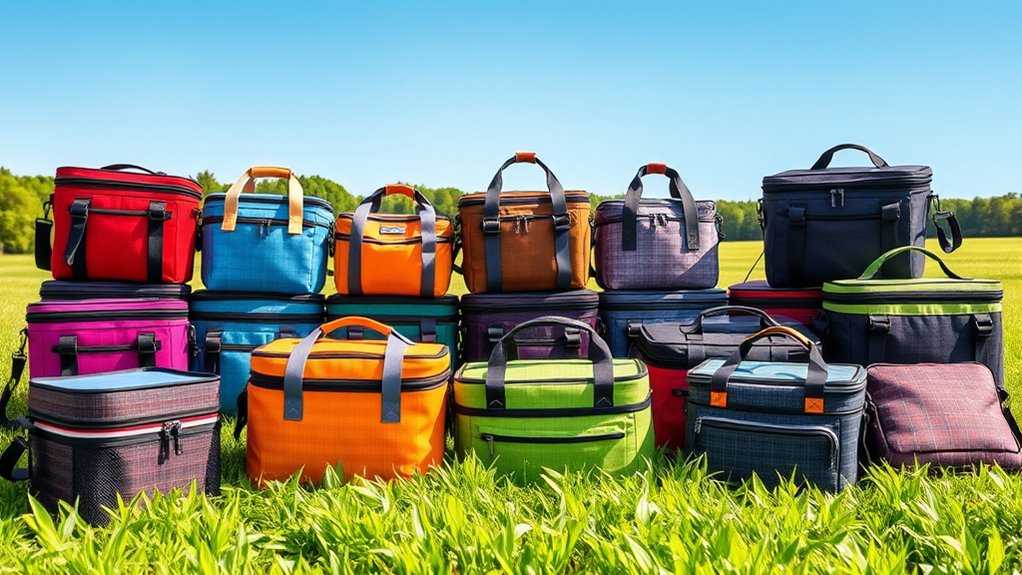 Looking for the best insulated soft coolers in 2025? I’ve found top options that combine durable materials, multi-layer insulation, and leakproof designs to keep your food and drinks fresh all day. Whether you need a compact lunch bag or a large capacity ice chest, these coolers feature rugged construction, easy portability, and impressive cold retention—some up to 24 hours. Keep exploring to discover how these coolers can elevate your outdoor adventures.
