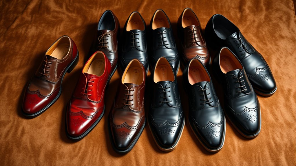 Choosing luxury men’s dress shoes that stand the test of time requires paying close attention to their materials and construction. High-quality materials like full-grain leather and reinforced stitching are essential, as they greatly extend the shoes’ lifespan. Features such as cork footbeds and recraftable construction allow shoes to be resoled and restored, often lasting decades with proper care. Regular cleaning, polishing, and correct storage help preserve the material integrity and prevent premature wear. Well-made shoes with sturdy outsoles, whether rubber or leather with non-slip features, resist damage from daily use and rough surfaces. Additionally, investing in reputable brands known for craftsmanship and durable construction techniques ensures your shoes remain elegant and functional over the years, making them a worthwhile long-term investment.