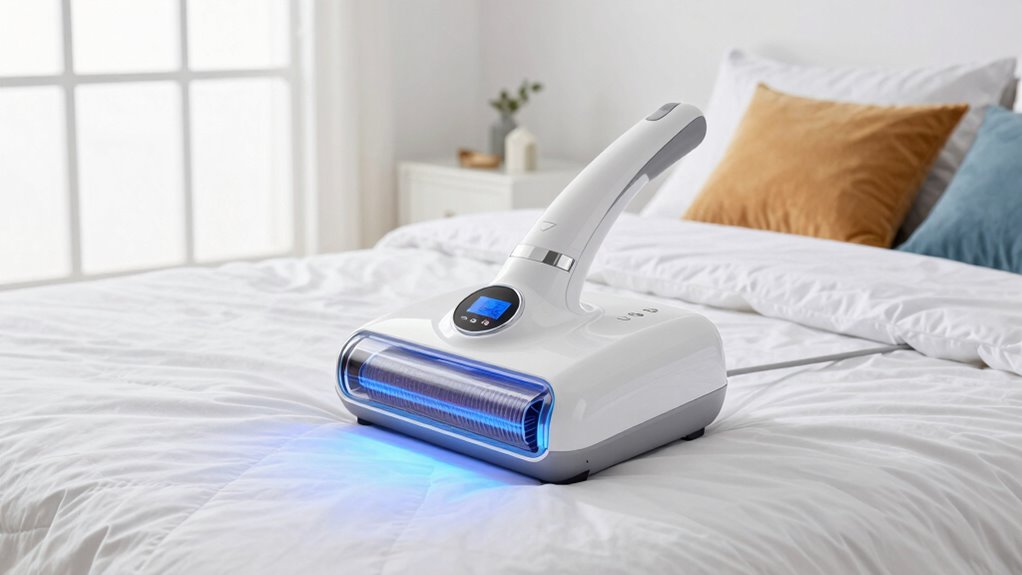 Choosing the right mattress sanitizing vacuum can truly transform your sleep environment. Did you know that regular UV-C sanitation can eliminate up to 99% of bacteria and viruses? Imagine sleeping soundly, knowing your bed is not just clean but sanitized at a microscopic level. With these top devices, you’re investing in healthier, allergen-free nights. Don’t wait—your best sleep starts with a cleaner, safer mattress today.