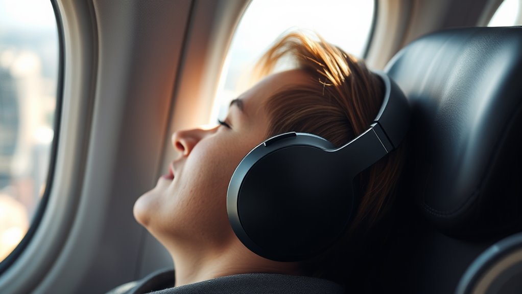 Think of your headphones as a trusty shield on your journey. For airline travel, I recommend models with superior noise canceling and long-lasting comfort, like Sony WH-1000XM5, to block engine roar and cabin chatter. On trains or buses, lighter, more portable headphones like Bose QuietComfort Earbuds work well without sacrificing sound quality. Ultimately, choose headphones that fit your travel environment and keep you comfortable and immersed in your music or silence.