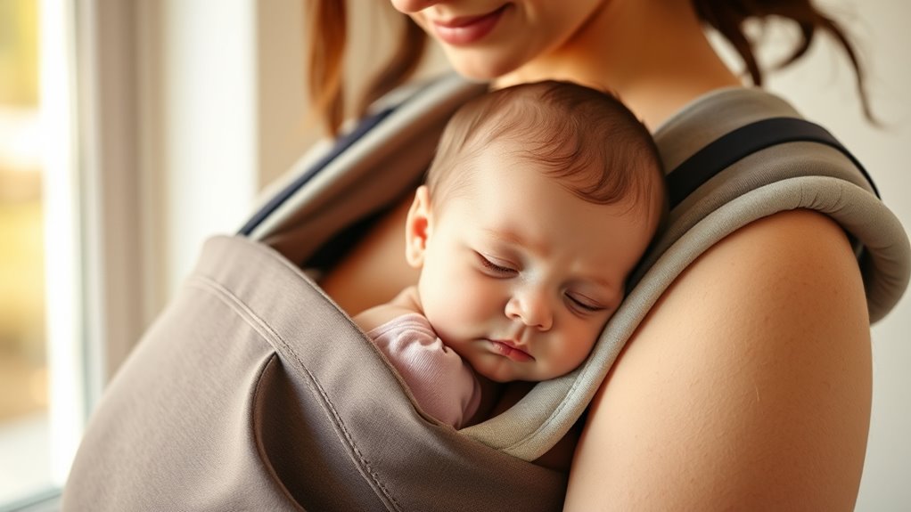 Opting for breathable, soft fabrics is essential because they keep both baby and parent comfortable during extended wear. Fabrics like cotton, linen, and blends such as cotton-linen hybrids are gentle on delicate skin and help minimize irritation. Natural fibers like organic cotton and bamboo offer superior softness, durability, and hypoallergenic qualities, making them ideal for sensitive skin. Breathable materials like mesh or moisture-wicking fabrics help prevent overheating, ensuring comfort even during warm days or active use. Lightweight, breathable fabrics facilitate airflow, reducing heat buildup and enhancing comfort for both of you. Stretchy fabrics with high spandex or elastane content provide a snug, ergonomic fit that conforms to your body while supporting proper baby positioning. Overall, these fabrics promote comfort, safety, and a better bonding experience.