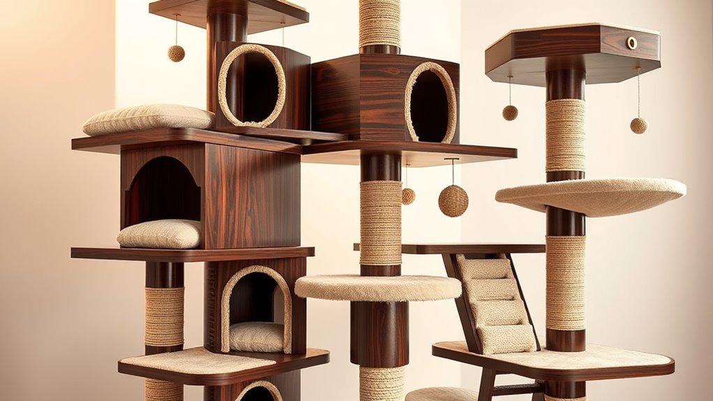 - Emphasizes stylish, space-efficient designs that blend with home decor while maximizing vertical play and resting areas.