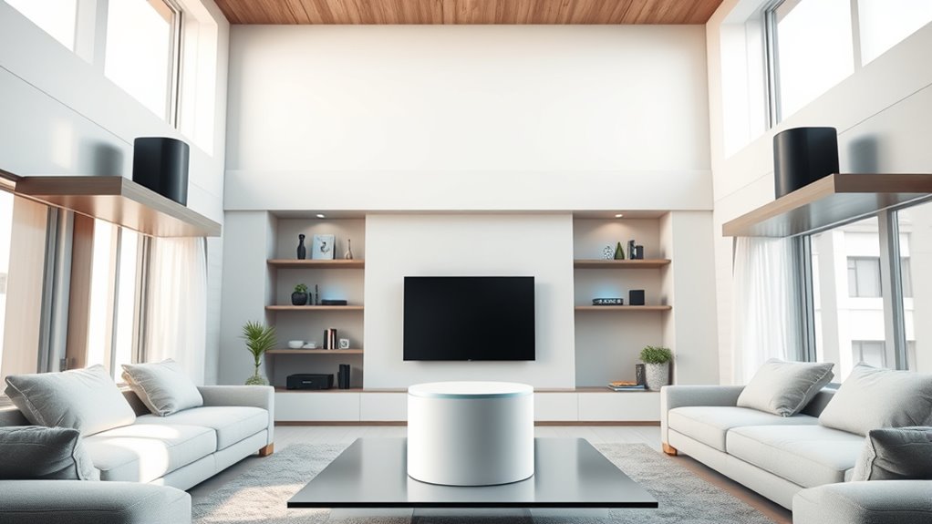 A smooth setup process can make or break your experience with a whole-home mesh Wi-Fi system. I recommend choosing systems with a user-friendly setup that takes under 30 minutes, using intuitive mobile apps or web interfaces. Look for guided installation with visual instructions, step-by-step prompts, or automatic detection of the best node placement. Quick pairing features, like one-click addition of nodes, simplify expanding coverage without hassle. Clear, thorough instructions and troubleshooting support are essential to minimize errors and delays. Additionally, opt for systems that automatically optimize network settings and suggest ideal placements, reducing manual configuration and boosting initial performance. Overall, a straightforward setup ensures you’re connected faster and with less frustration, making your investment more enjoyable from the start.