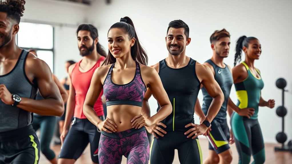 You’ll find high-end workout apparel offers a sleek range of styles, from minimalist designs to bold, vibrant patterns. I love how brands incorporate modern cuts, flattering fits, and unique details like mesh panels or reflective accents. Whether you prefer streamlined leggings, cropped tops, or stylish hoodies, there’s something to match every personality. These pieces not only boost confidence but also keep me motivated, all while looking fashionable during my workouts.
