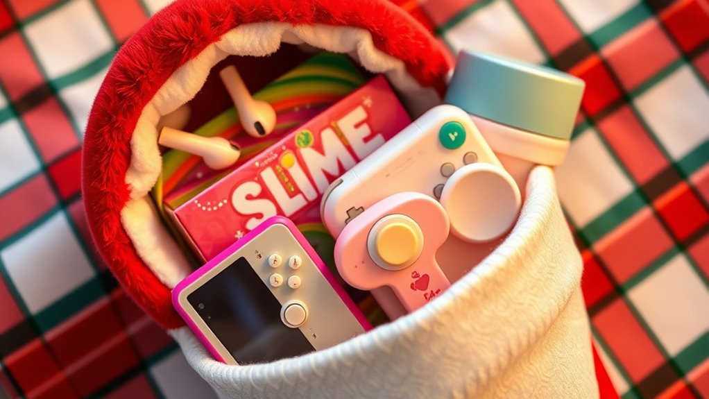 Choosing age-appropriate stocking stuffers for teens in 2025 requires careful consideration of their developmental stage and personal interests. It’s crucial to select items suitable for ages 13-19, making sure they match the teen’s maturity level. Always check for age restrictions or safety warnings, especially for small items that could be a choking hazard for younger teens. Consider their preferences to avoid gifts that feel too childish or overly mature, aiming for a balance that feels right for their age. The design, themes, and functionalities should align with their social interests and hobbies, encouraging engagement. Additionally, verify that materials used are safe—free from allergens or sharp edges—to ensure the gift is both fun and safe for the recipient.