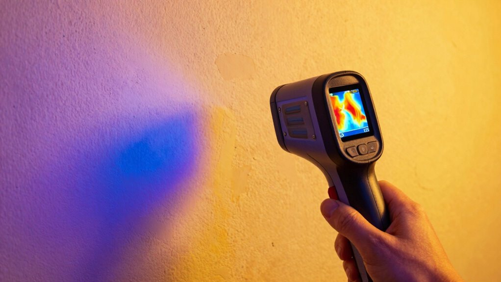 Thermal cameras aren’t effective on all wall surfaces and materials. I’ve found they work best on smooth, non-reflective surfaces like drywall or painted walls. They struggle with shiny or metallic surfaces, which can reflect thermal radiation and give inaccurate readings. Additionally, textured or uneven surfaces can create shadows or distortions, making moisture detection less reliable. So, I recommend using thermal imaging alongside other moisture detection methods for the best results.