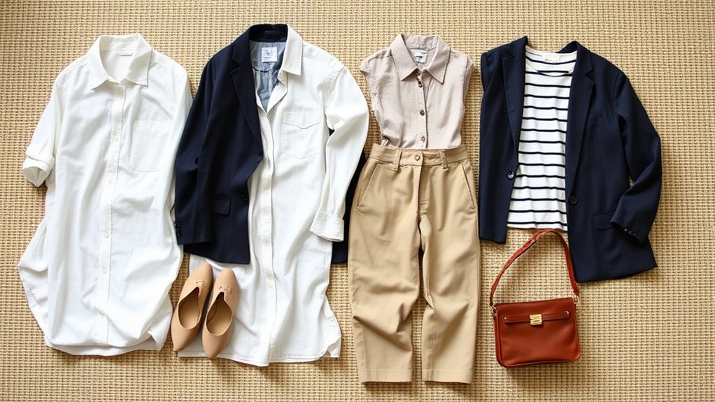 - Layering essentials such as wool blend sweaters and lightweight linen shirts for adaptable weather comfort.