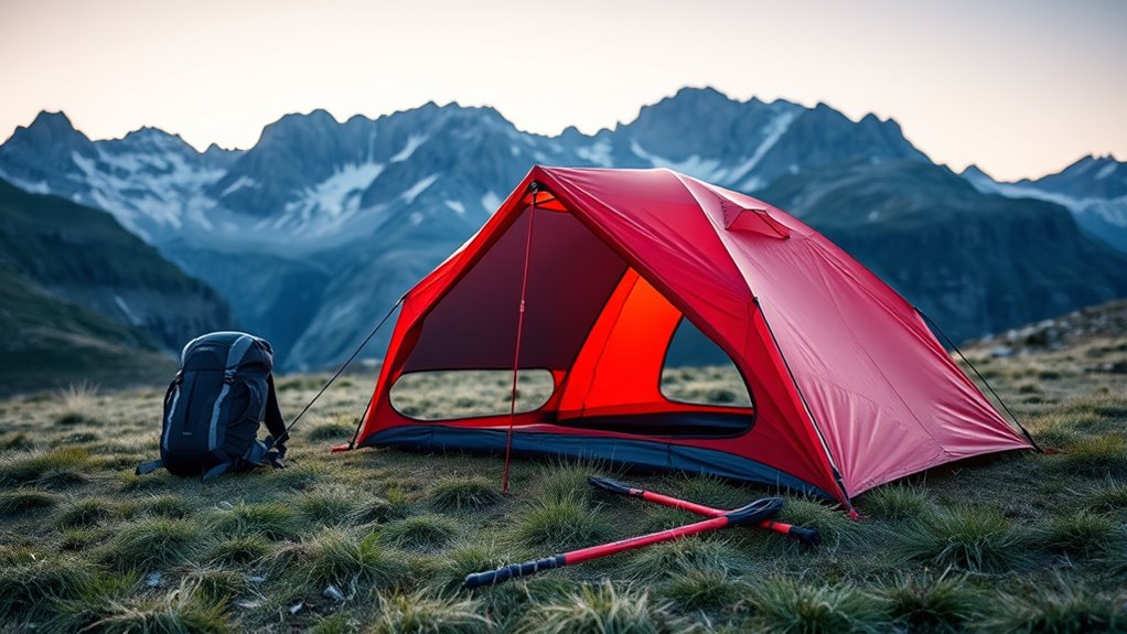 When high winds and heavy rain hit, I trust my ultralight tent to hold firm. Its durable materials and reinforced seams stand up to the storm, keeping me dry and safe. I’ve tested it in fierce weather, and it remains resilient, thanks to its sturdy frame and waterproof coating. For backpackers seeking reliability in tough conditions, a quality ultralight tent offers peace of mind amidst nature’s fiercest challenges.